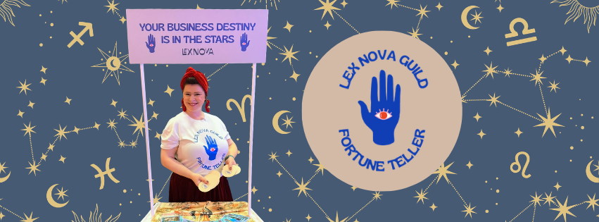 Here's what delegates encountered: a magical pop-up tarot reader's booth, an oracle in full regalia (that was me), and two distinct readings on offer. The first was a traditional oracle card reading — a moment of reflection in the middle of a busy conference day. The second was a LexNova Guild business destiny reading, using our bespoke Major Arcana deck designed specifically for the Guild, with each delegate walking away with their own talisman card.